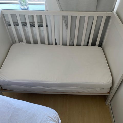 IKEA Spjälsäng med Wellpur madrass + madrasskydd