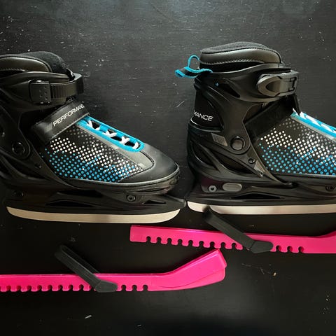 Skridskor för barn i med justerbar storlek, 29-32. Skridskorna är blå och svarta och har justerbara spännen för bättre passform.