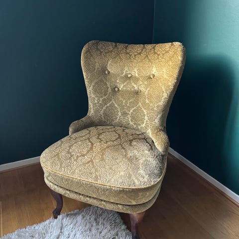 Emma fåtölj. Guldfärgad sammet.