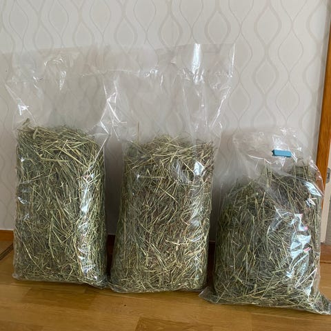 Hö timotej. Prima kvalite, grönt o väldoftande. Lite grövre, gillas av kaniner