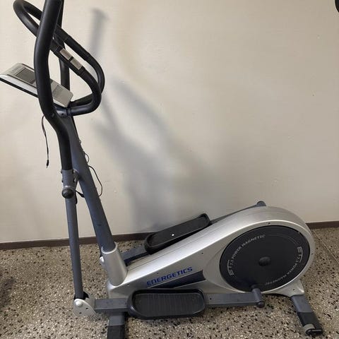 Crosstrainer med justerbar motståndsnivå, digital display och ett antal förinställda program. Utrustad med stabil ram och halkfria pedaler för säker träning. Passar för hemmabruk och erbjuder en helkroppsträning. Fullt fungerande, sparsamt använt för ett antal år sedan.