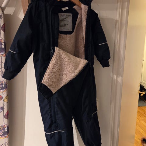 • TIll storlek 110 är dragkedjan extra lång för att underlätta klädbyten (från storlek 110 går dragkedjan endast ned till grenen)