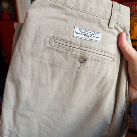 Ralph Lauren Polo Beige klassisk Chino kavaj i bomull för herr i storlek M. Kavajen har en klassisk design med två framfickor och en bröstficka. Materialet är bomull, vilket ger en bekväm och andningsbar känsla. Felfri.