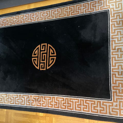 Visst syns det att den är använd (några små fläckar). Ej provat att rengöra. Men i stort sett i gott skick. Mycket snygg blå färg.