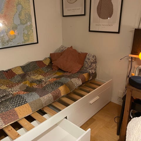 Den bortskänkes då en skruv saknas, men för den händige inga problem. Madrass medföljer. Finns att hämta i Genarp.