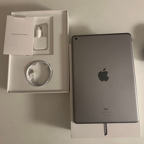 Apple iPad med 64 GB lagringsutrymme. Är i princip oanvänd och är 100% fri från slitage och märken. Enheten är nollställd, har senaste programvaran och startas upp som en ny iPad.