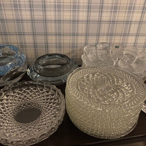 Samling retrovaser från 50-70-tal. Någon/några Orrefors om jag minns rätt.