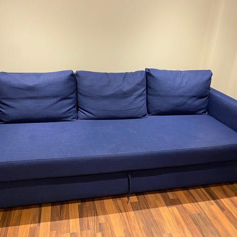 Fyra år gammal bäddsoffa som stått i ett gästrum mestadels av tiden. Soffan är i mycket bra skick och har två extra kuddar (vid divanen) samt en bäddmadrass.