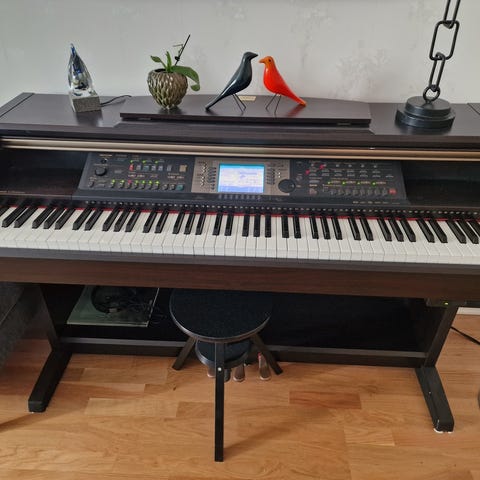 Kvalitetsprodukt med känslan av ett riktigt piano (viktade tangenter, pedaler osv) men med ytterligare funktioner och ljud från andra instrument. Jag köpte det av en granne som är musiker, men det funkar även för nybörjare. Roliga funktioner kan få även en motvillig att utforska musiken kreativt. Säljer motvilligt pga flytt.