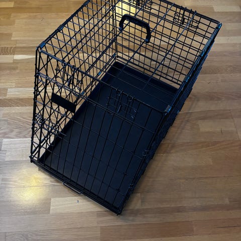 Metallbur för hund med bottenplatta. Burens konstruktion är av metall och den har en bottenplatta som underlag. Produkten är avsedd för användning som hundbur.