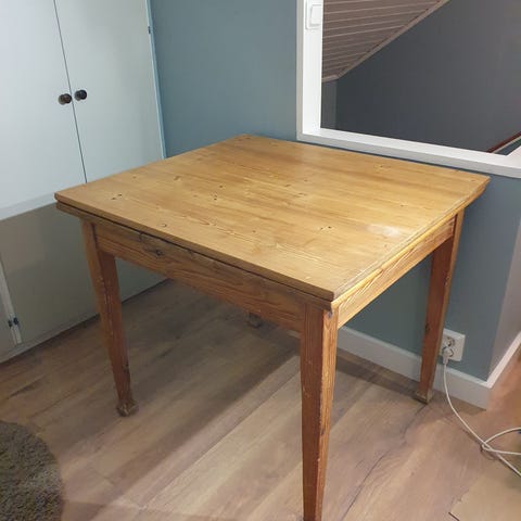 Ett mycket vackert Slagbord från Norrland, ca. 1800-tal. Mycket praktiskt att kunna förvara linne ex. I lådan. Två klaffar för att få upp en bordskiva.