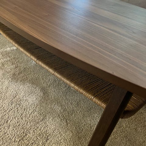 Något sliten bänk/soffbord från IKEA STOCKHOLM i rotting