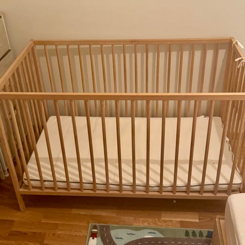 IKEA spjälsäng i vit färg avsedd för barn. Bra skick, är nedmonterad och finns att hämta på Hammarö. Nypris 1295 kr. Säljes inklusive madrass och spjälskydd. Se länk för mått och annat: https://www.ikea.com/se/sv/p/gulliver-spjaelsaeng-vit-10248519/