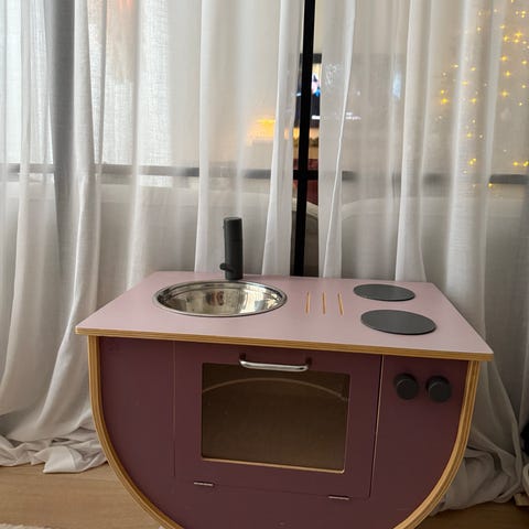 Jättesött Sebra barnkök i trä med spis och vask.