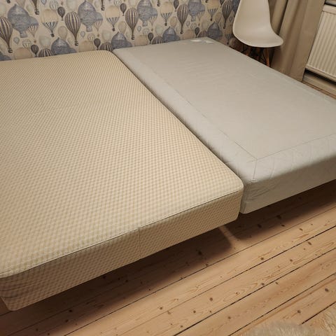 Lätta stommar, enkla att flytta/lyfta. Kan lätt göras om till dubbelsäng.