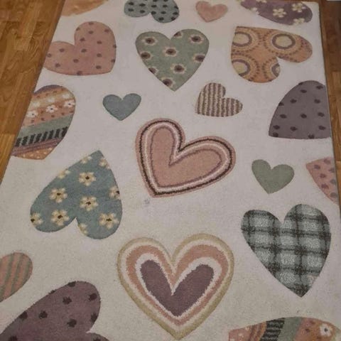 Det är därav även ett litet parti i ena hörnet under mattan som är lätt "kladdig", men inget som har påverkat golvets skick som mattan legat på!