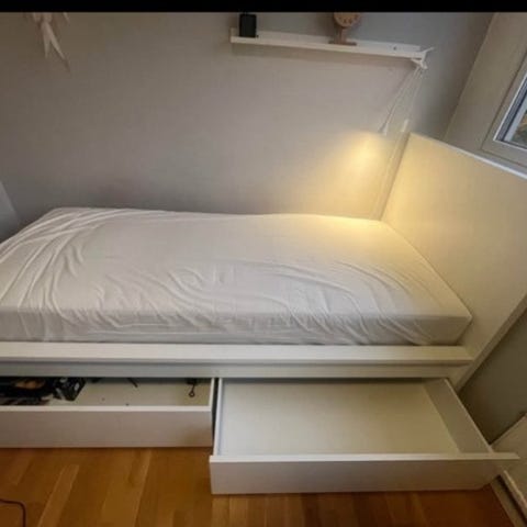 Säng IKEA Malm. Lite skav på gaveln annars bra skick. Ribbotten ingår. 1000kr
