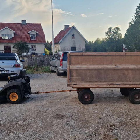 Stiga Excel 50S. Utrustad med en bensinmotor och stora hjul för bättre framkomlighet på gräsytor. Lämplig för klippning av medelstora gräsmattor.