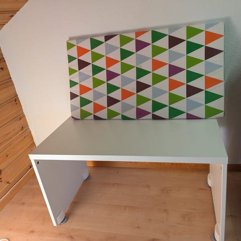 IKEA barnmöbel bestående av ett skrivbord och två stolar i vitt. Möblerna har mindre märken och slitage på ytorna. Passar för barnrum och aktiviteter som studier och lek.