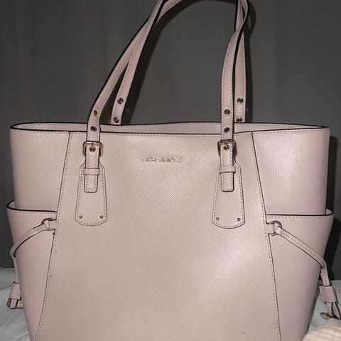 Säljer en stilren och elegant axelväska från Michael Kors i mörk färg med guldfärgade detaljer. Väskan har ett dekorativt mönster med nitar som ger en exklusiv och tidlös känsla. Passar lika bra till vardag som till fest.