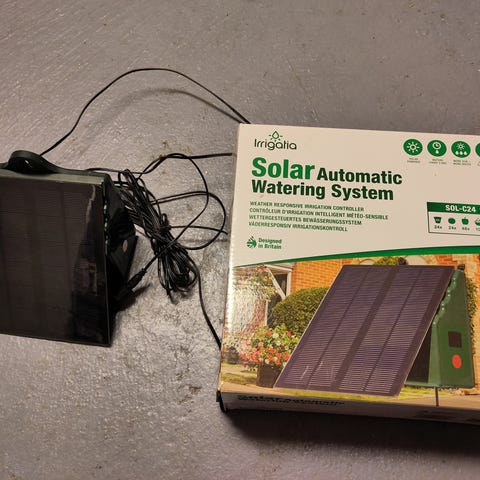 Irrigatia SOL-C12L. Begagnat solcellsdrivet bevattningssystem för att droppbevattna odlingar i kruka, i t.ex ett växthus eller uterum. Jag har använt denna i tre säsonger och tycker att det fungerar mycket bra, så skönt att slippa vattna själv! Och med denna kan man resa bort en eller ett par veckor, bara man ser till att vattentunnan som den kopplats till är full med regnvatten. Mitt bästa köp till trädgården! Inköpt för 1098 kr år 2023. Säljes pga flytt till lägenhet.