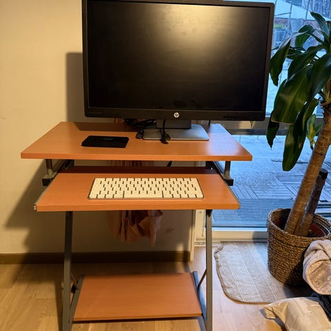 Skrivbordet - modell Linmon från IkEA säljes för 200 kr. Pris nyskick: 400.