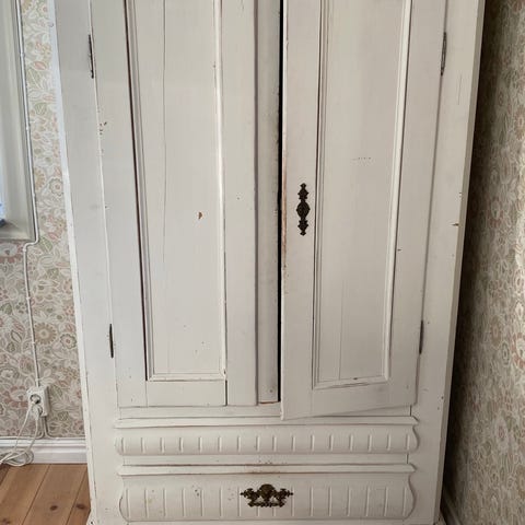 Stort linneskåp, renoverat skåp, beiget linneskåp, träkskåp