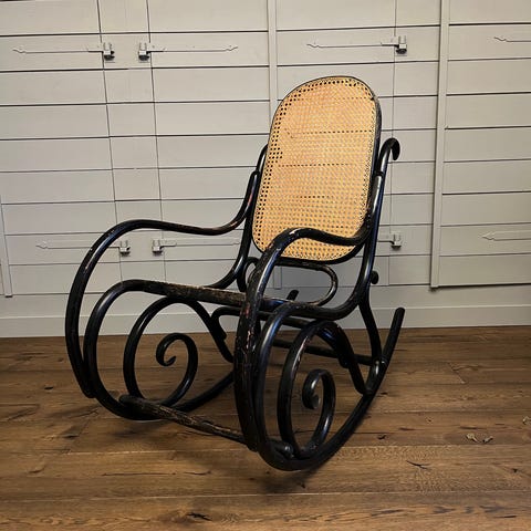 En klassisk Thonet gungstol från början av 1900-talet. Stolen har kallstämplad rotting och är tillverkad i Polen. Inköpt på Stockholms auktionsverk. Säljs pga flytt.