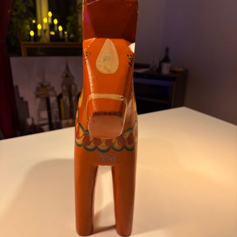 Dalahäst Träfigur Röd med Målade Dekorationer