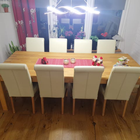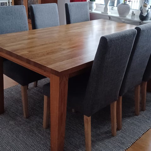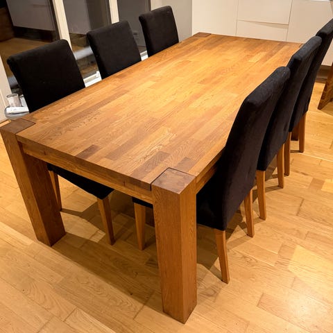 Säljer en fin matgrupp med fyra stolar i ek.