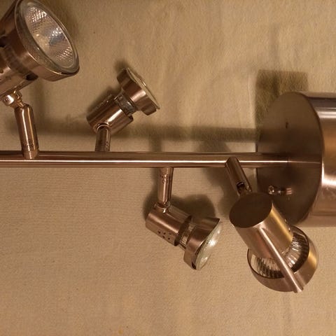 När lampan är tänd upplevs den svart, när den är släkt framträder silvermönstret. Mer beroende på mörkret i rummet.