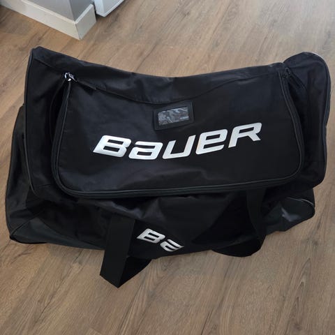 Bauer rullskridskoryggsäck i svart färg. Ryggsäcken har hjul och teleskophandtag för enkel transport. Flera fack och dragkedjor för förvaring av utrustning. Passar för förvaring och transport av rullskridskor och tillbehör.