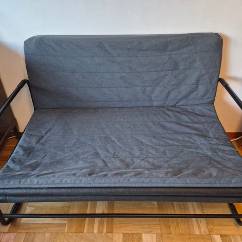2 bäddsoffa, vit ,beige. Total utfälld 2,25m. Bredd. 1,5 m . Djup 70 cm.