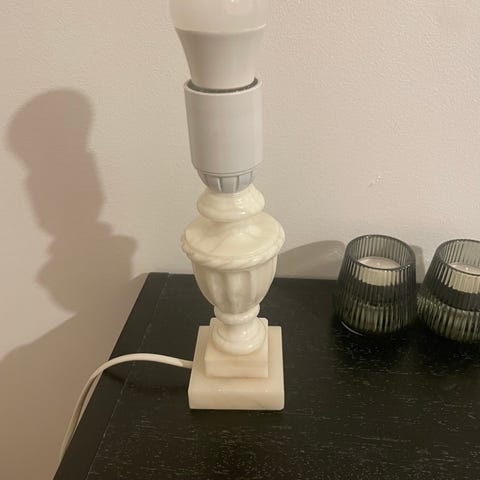 Fot av alabaster och skärm av tyg.