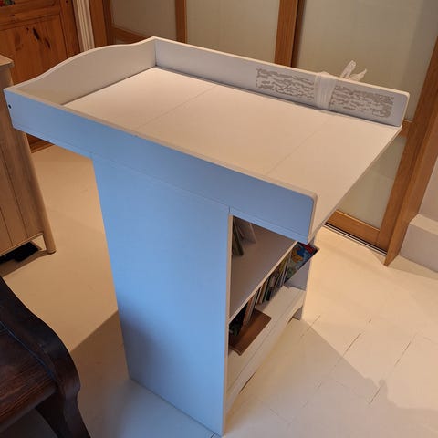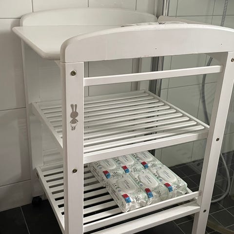BRIO Skötbord barnmöbel i vit färg. Tillverkad i trämaterial, avsedd för barn.