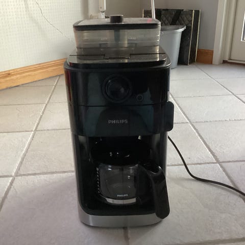 Philips kaffemaskin i svart färg. Maskinen är designad för att brygga kaffe och har en kompakt form som passar i kök eller kontor. Du lägger in hela kaffebönor och så får du en god kaffe!