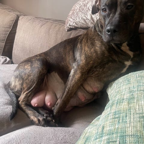 Mamma är en amstaff och pappa en Bully XL. Vi har båda hundarna hemma som familjehundar. De är mycket stabila i psyke och fria från allergier och ledbesvär.
