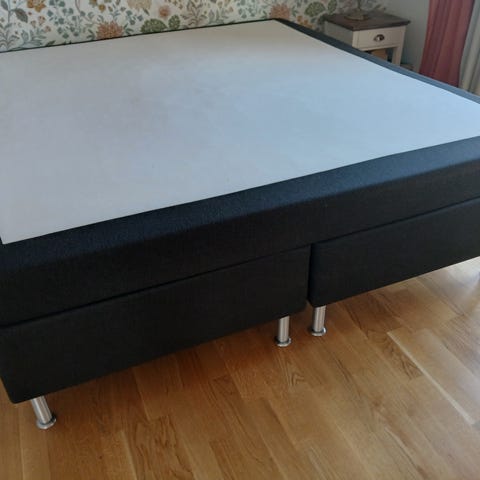 Säljer vår kontinentalsäng 180 cm bred, 200 cm lång. Säljs med botten i två delar, sängben och mellanmadrass. Sängen säljs utan sänggavel och bäddmadrass.