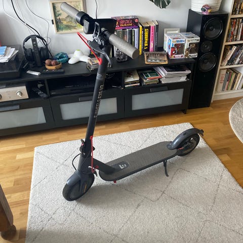 Pålitlig elspark från E-wheels, den har en nominell max effekt på 1000w och går i 30kmh.