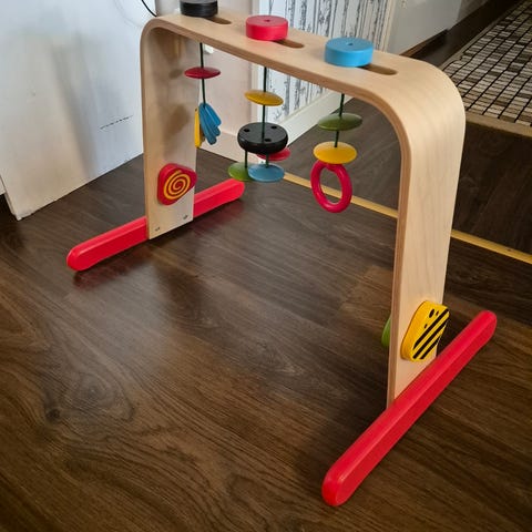 Nalle Puh aktivitetsmatta babygym för barn med leksaker, kudde m.m Mattan är färgglad och har flera hängande leksaker för stimulans och lek. Passar för småbarn och kan användas för motorisk träning och underhållning.