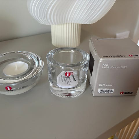 Iittala glasljushållare i 4-pack, tillverkade i grönt glas. Passar för användning som ljushållare för värmeljus, 50kr st