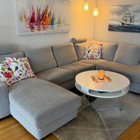 Jätte fin och skön hörnbäddsoffa med mycket förvaringsutrymme också. Inga repor eller sprickor. Fåtölj och pall följer också med.