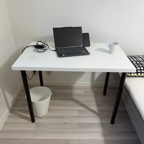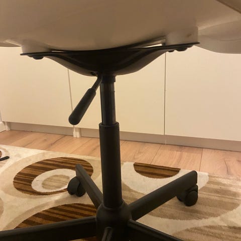 Undersida i svart metall. Väldigt stabil i konstruktion. Lädret gör det mjukt att jobba mot.
