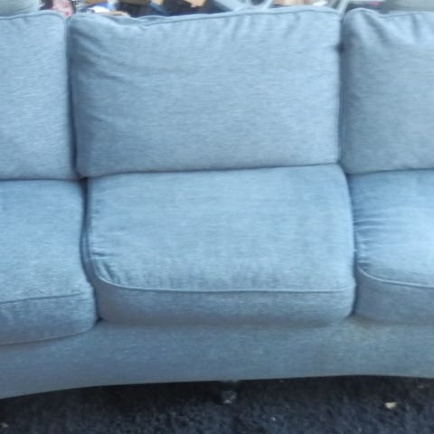 Den är använd. Lite små fläckar men går nog med en kemtvätt.