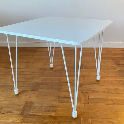 Det är höj- och sänkbart. När det är i sitt lägsta läge är det 62 cm högt och när det är höjt är det 72 cm.