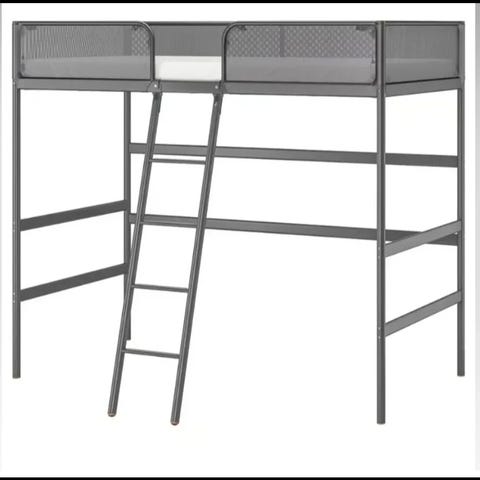 IKEA Loftsäng Tromsö 140 cm i vitt. Passar som loftsäng för barn, tillverkad i metall. Möjliggör utrymme under sängen för förvaring eller lek.