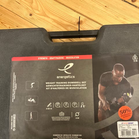 Hantlar med en vikt på 3 kg styck. I neopren. Blåa. Används för styrketräning och fitnessövningar. Några användnings märke. Säljs som ett par.