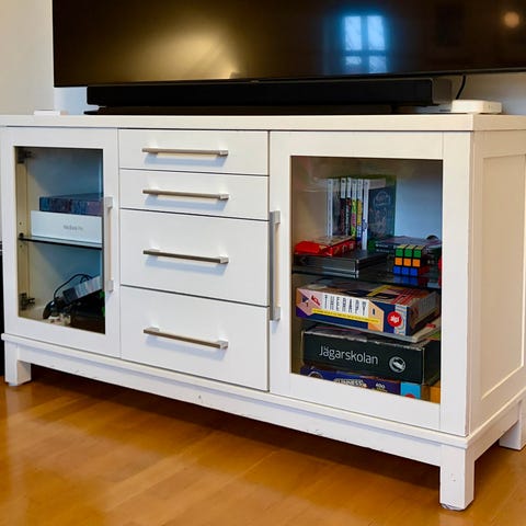 Mediamöbel från Bolia i lackerad fanér på mdf.