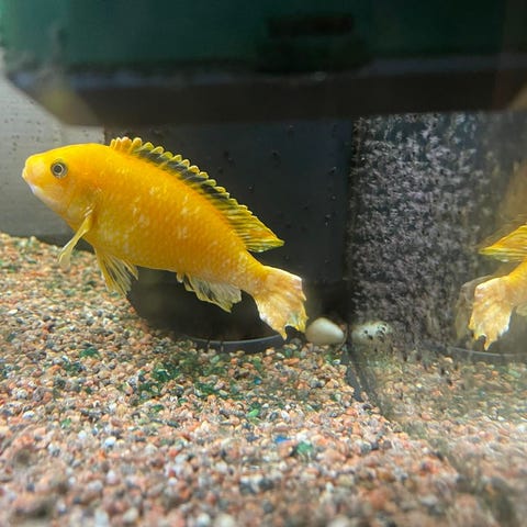 Crenicichla zebrina hane ca 35 cm. Äter allt inkl. Pellets.