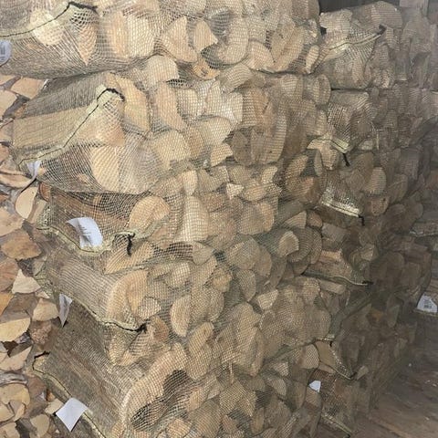 Torr björkved säljes i 40 liters säck.